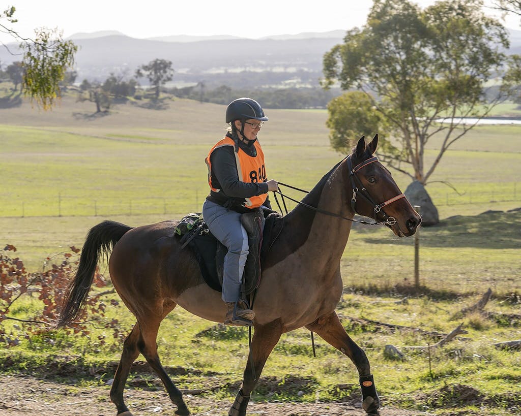The deep navy base is as dependable as the horses we trust beneath us, while the mahogany piping and embroidery add a warm, earthy richness, subtle, but strong. Just like the women we ride with. Just like you.